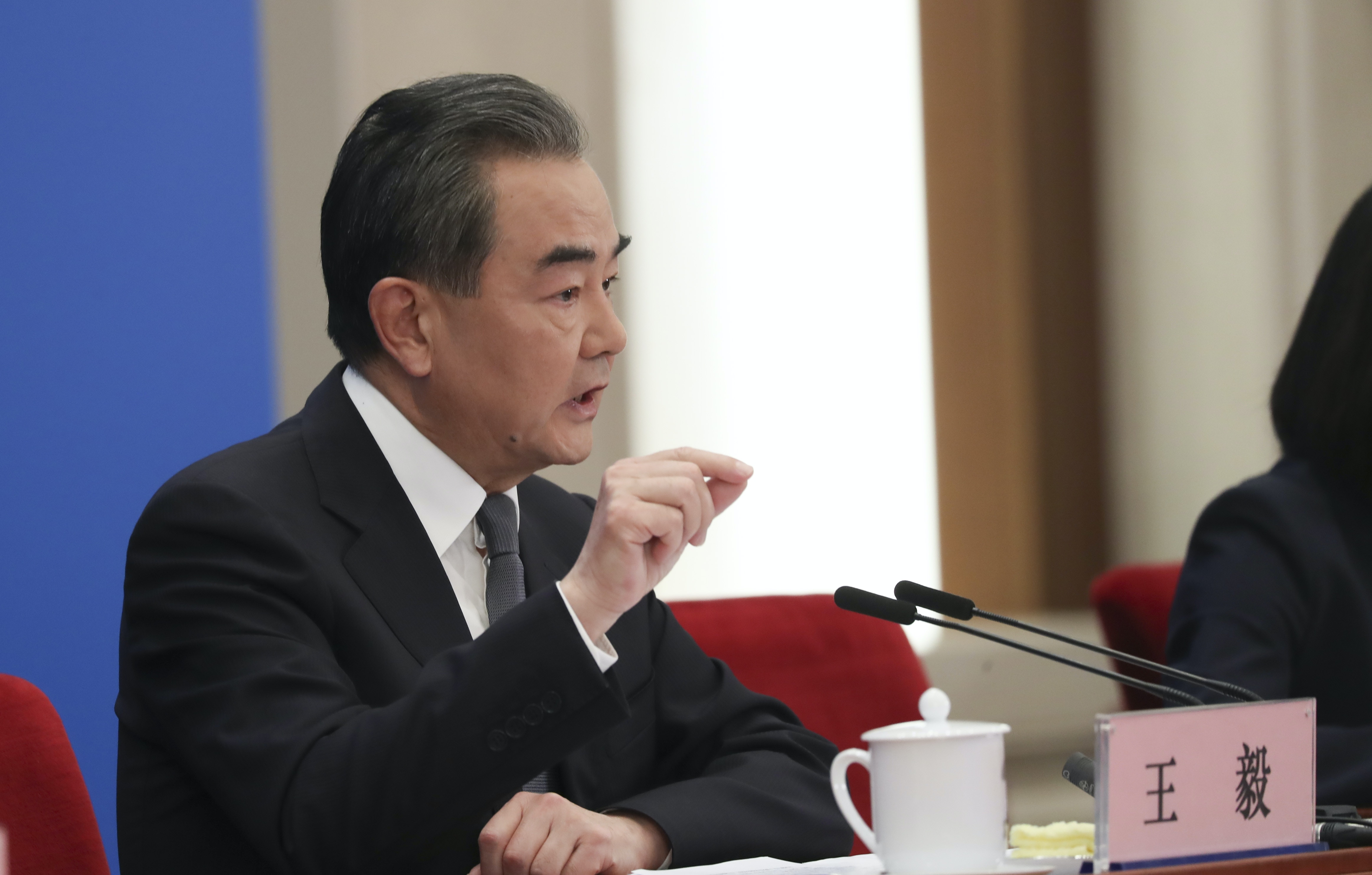 王毅表示,尊重記者提問題的權利,但其角度值得商榷,「凡事都應有一個是非判斷,人無是非,難以立信;國無是非,難以立世。」